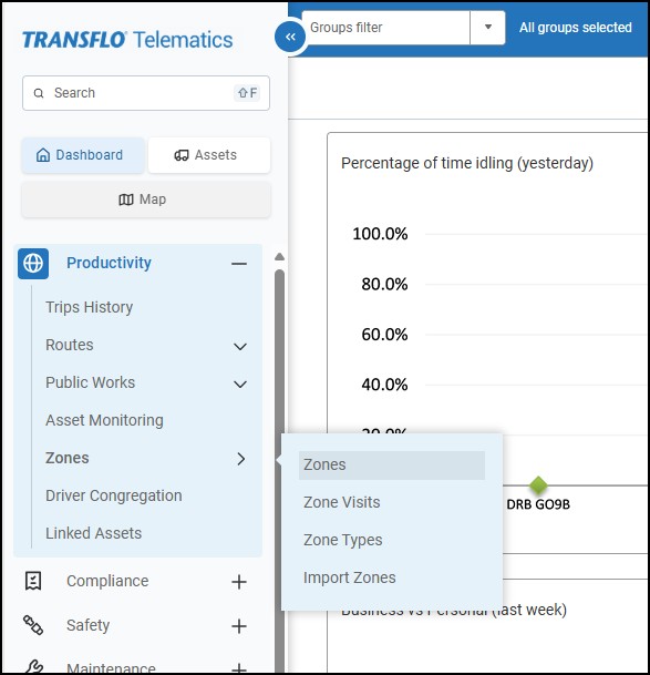 Under Publish to groups, select the user and vehicle groups that should have access to view and use this zone.