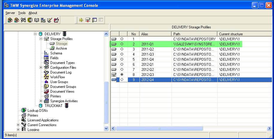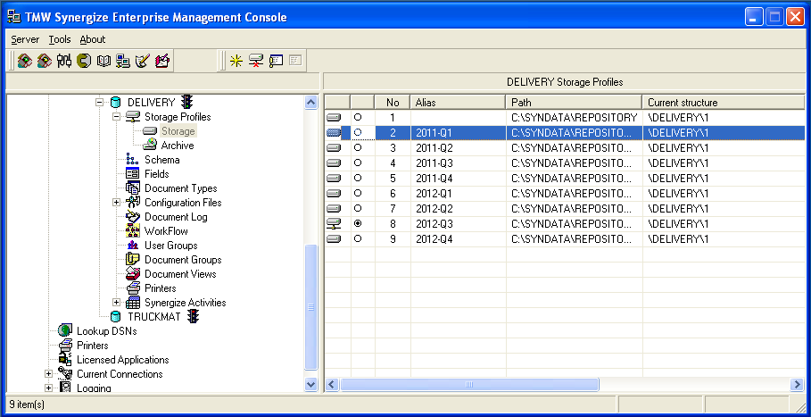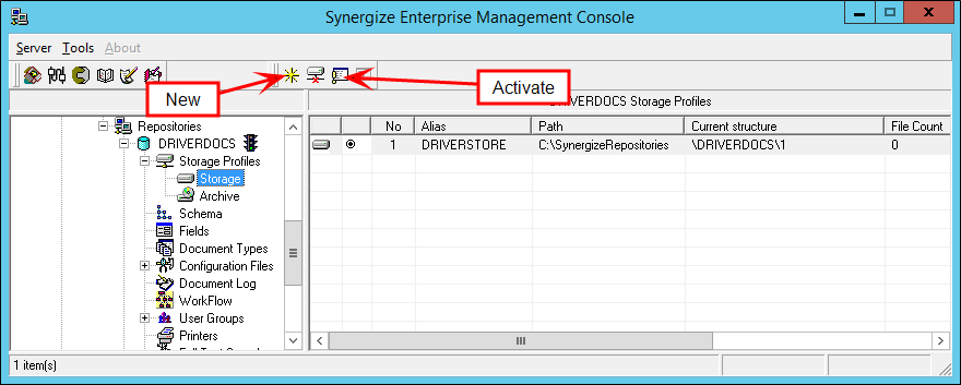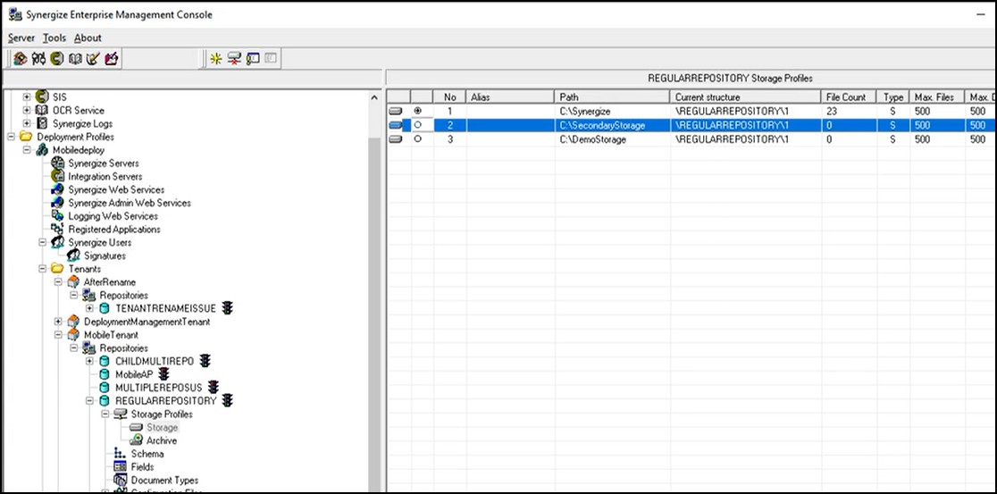Multiple Storage Profiles: A single Synergize repository can support multiple storage profiles. All profiles can be active for retrieval; however, only one (1) profile can be active for writing (saving files) at a time.