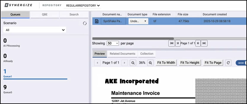After running this process, the image is added directly to the storage container and users can make updates in the Queue1 workflow in Synergize Explorer HTML5 edition.
