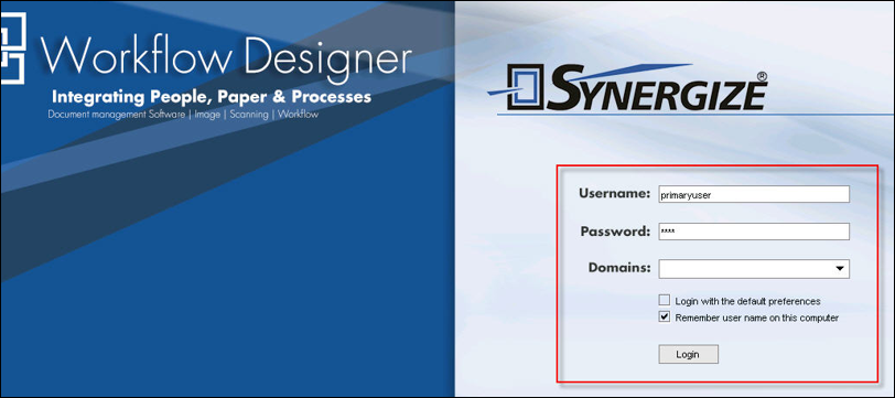 Log in to Synergize Workflow Designer web page.