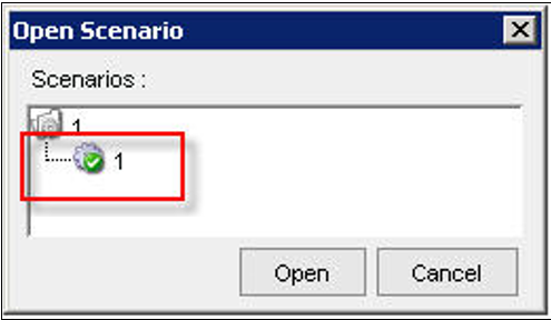 Select a scenario (a green check mark icon appears) and then click Open.