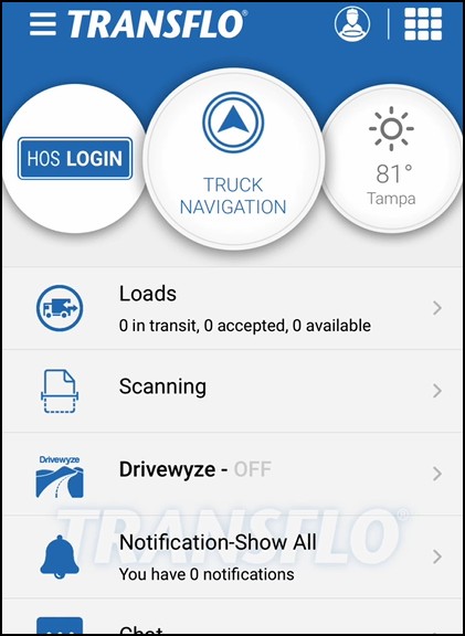 Reminder: Transflo is the premier provider of popular commercial apps, custom white label apps, in-cab tablet editions, embedded handset editions, and thousands of additional fleet-specific integrated features. Due to all the possible product configuration changes for your specific fleet, it is possible that user interface labels, buttons, links, dials, tiles, icons, colors, logos, and placement on the screen can vary. Features can also be hidden from your view based on customer account, fleet ID, or user permissions. In the documentation, we cover a default setup with screen examples that are generally similar for smart phones and tablets running either iOS or Android OS. Adjust certain steps, if needed, to reflect your actual device, product configuration, and company policies.
