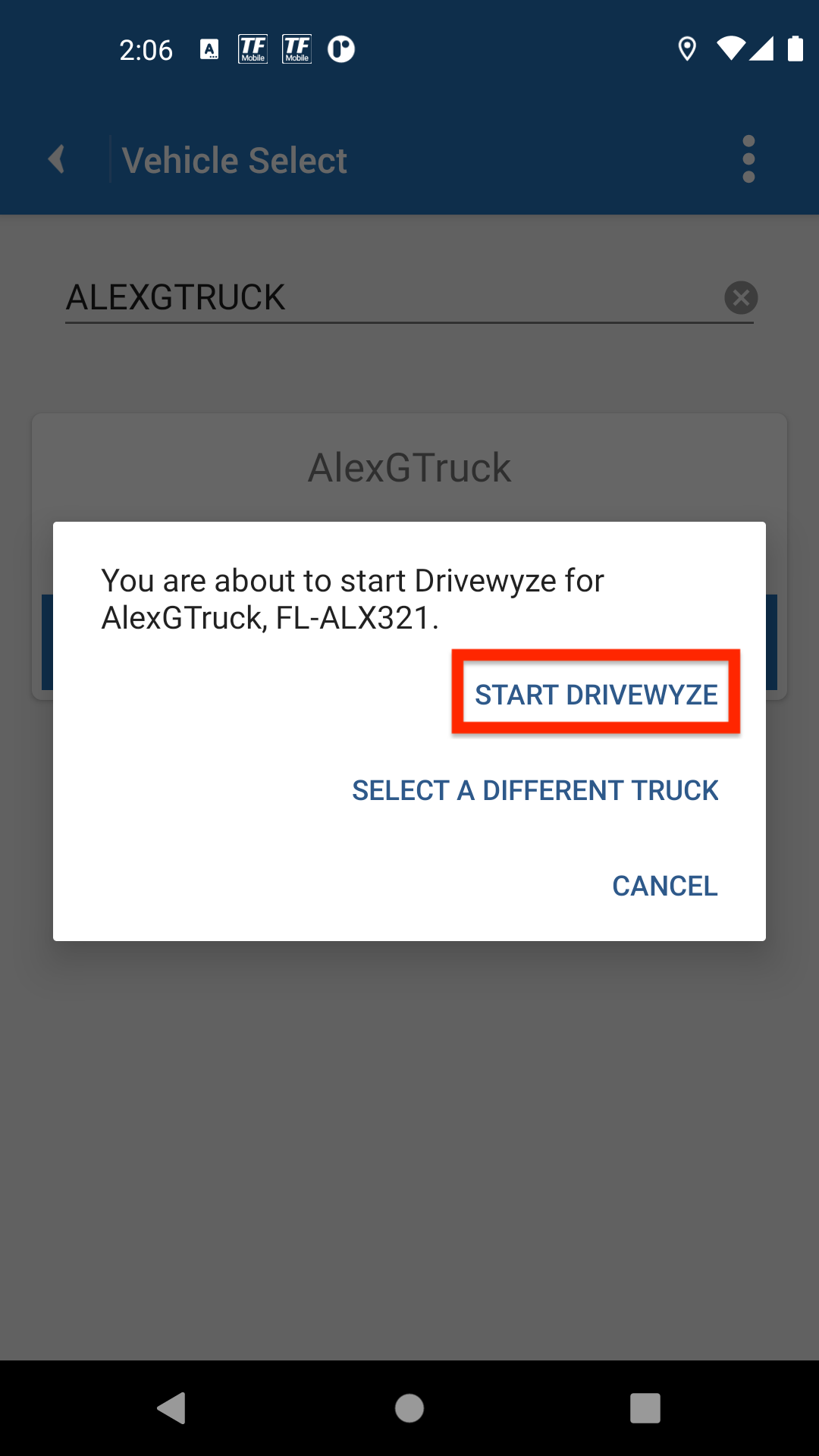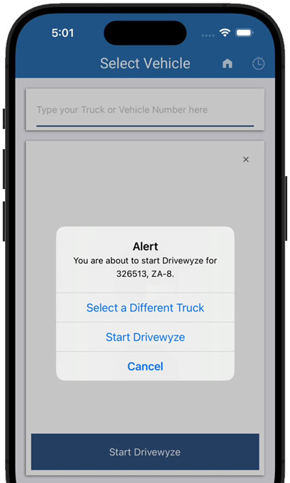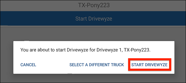 To start using the Drivewyze app with the vehicle you selected, tap the Start Drivewyze button.