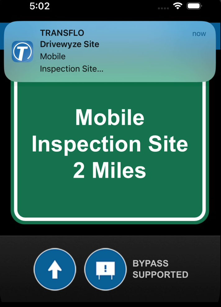 Drivewyze PreClear service provides authorized bypass and 2-mile and 1-mile visual and audio alerts as you approach over 900 weigh stations and inspection sites as a safety service in 47 states on your in-cab device, no transponders needed. Partnering with Transflo seamlessly integrates bypass functionality.