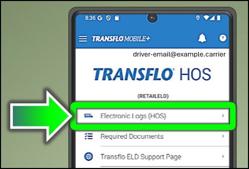 To learn more, see Transfer and Present ELD HOS Logs in Geotab Drive and MyGeotab. The same options are available in Transflo Mobile+ app, the Transflo HOS app, and the Transflo Telematics portal.