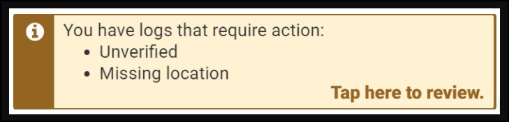The app informs you if your logs remain unverified or are missing location or other required information. Press Tap here to review. You are also prompted to verify logs when logging in or out of the app. If you have unverified logs from earlier driving activity, you are asked to review and verify them.