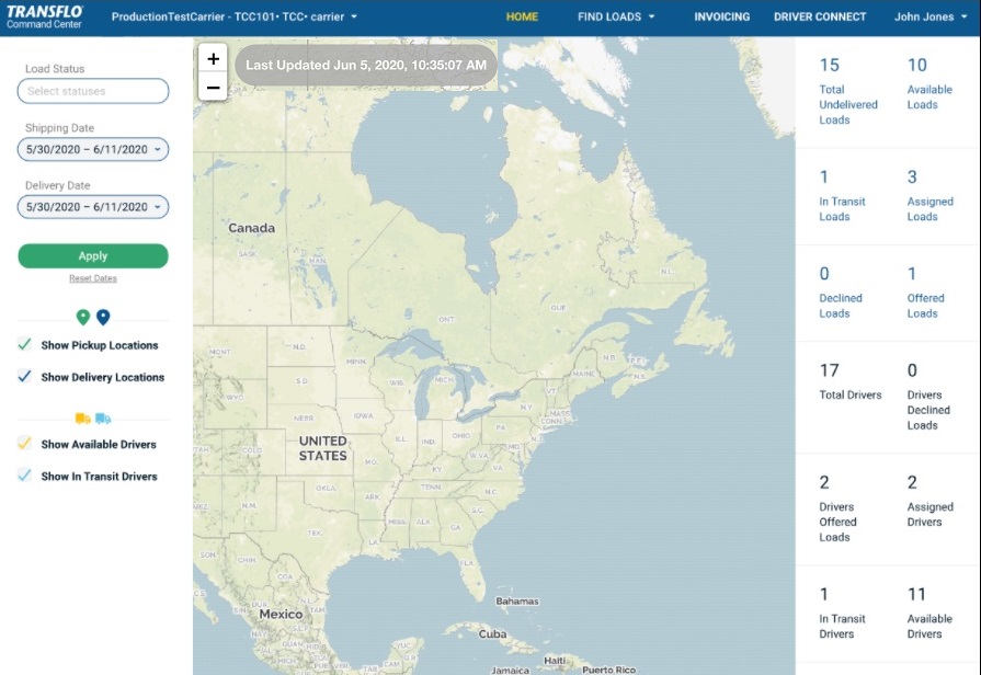 Welcome to Command Center: The TRANSFLO® Command Center web application provides the ability to view, track, and edit loads for carriers and brokers; adjust pickup and drop off locations for stops and deliveries; and manage driver offers and assignments.