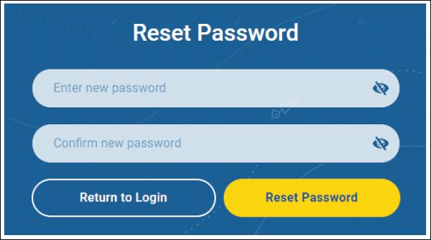 The Command Center Reset Password page opens in a new browser tab where you can reset access to your account with a new password.