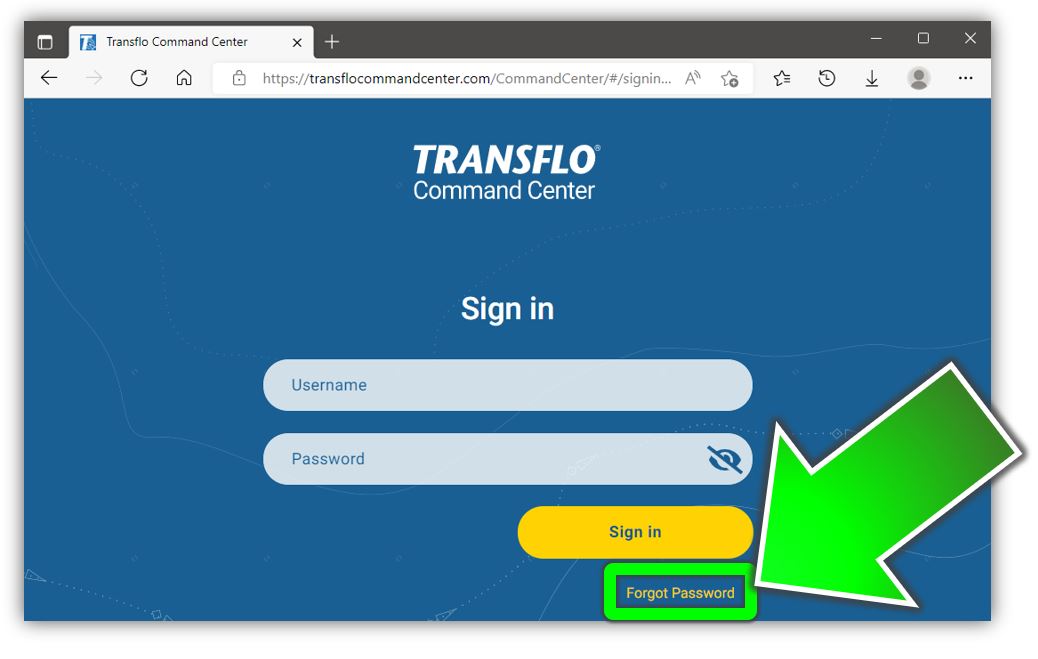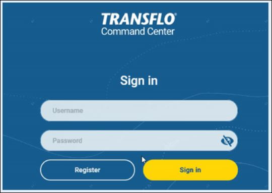 - On the Transflo Command Center Sign In page at https://transflocommandcenter.com/CommandCenter, click Register (if your invitation link was already encoded for you, it might skip this step) or enter your username and password and then click Register.