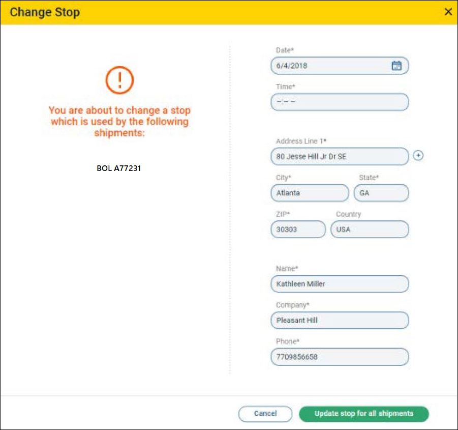 Make any changes necessary and then click the Update stop for all shipments button to save the changes.
