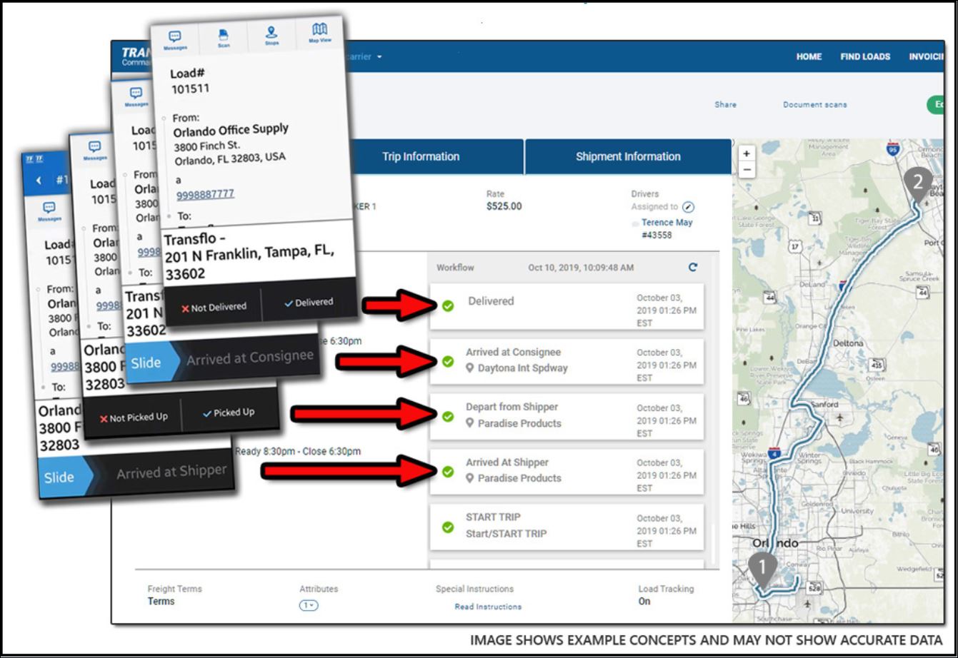 2. Load information also appears for each subsequent event as the driver picks up and delivers the load:
