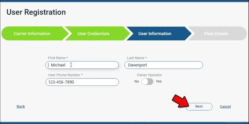 Verify the pre-filled data. Make only the required corrections. You cannot edit your Carrier US Department of Transportation (DOT) number or registered ZIP (postal) code already on file.