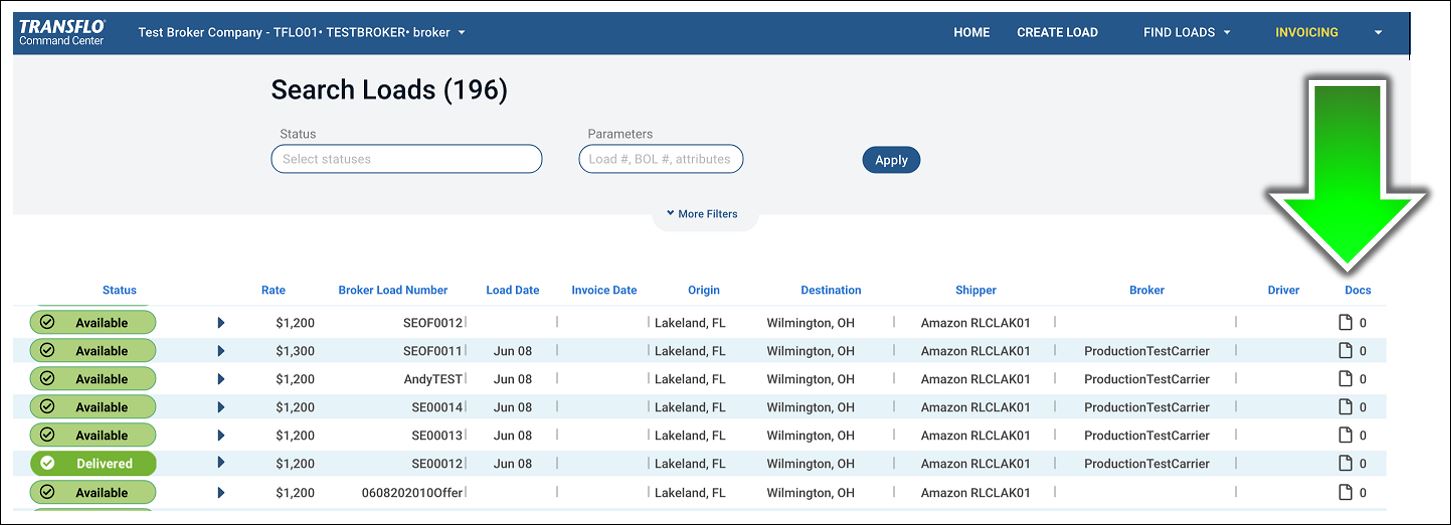 Follow these steps to view the invoice, eBOL, ePOD, and other load documents.