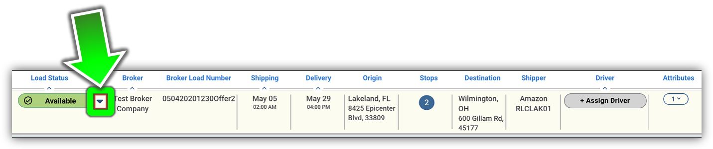 (Optional) Expand the row for a load by clicking the drop-down arrow.
